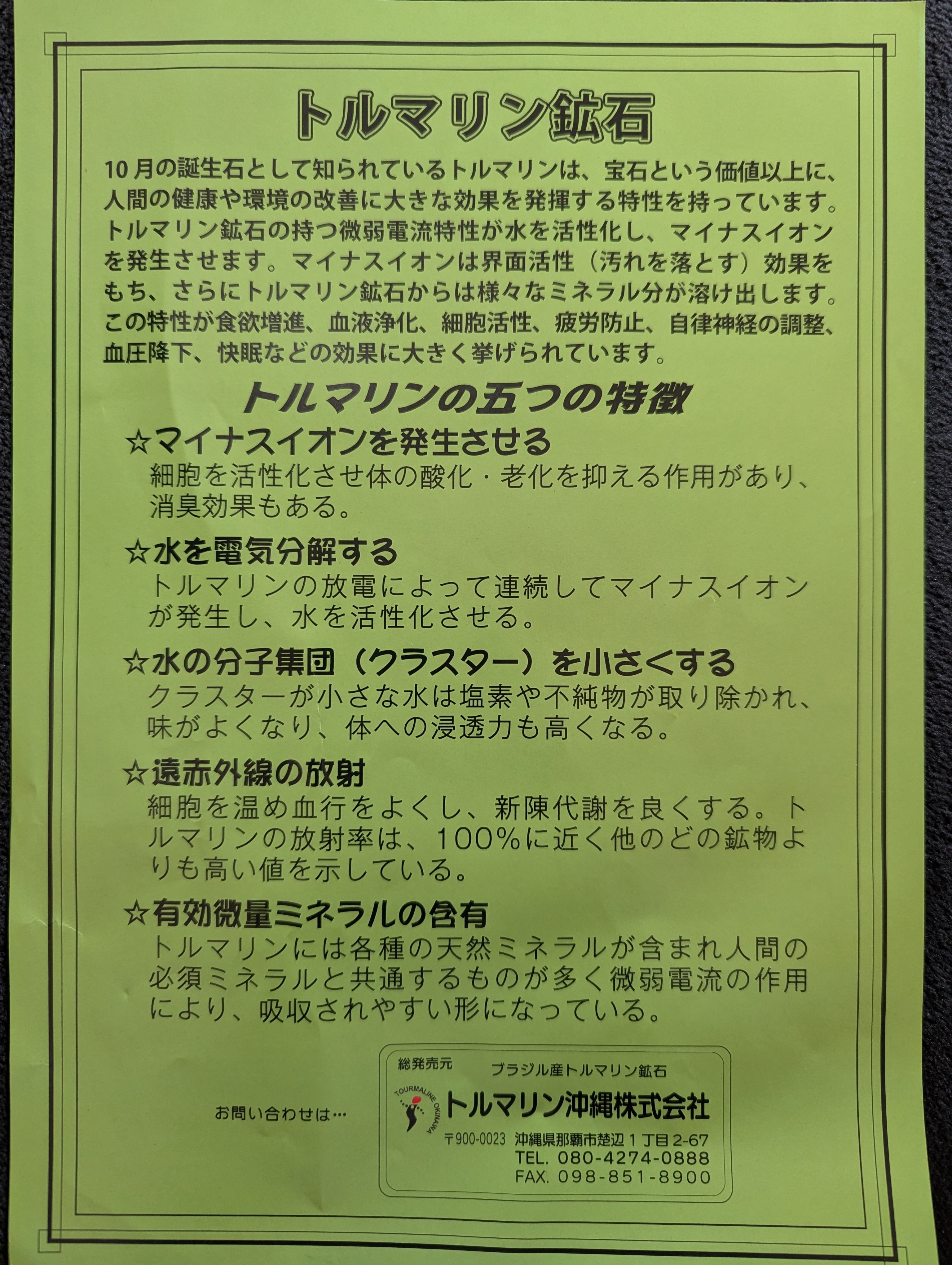 トルマリンは各種の天然ミネラルが含まれ人間の必須ミネラルと共通するものが多く微弱電流の作用により、吸収されやすい形になっている